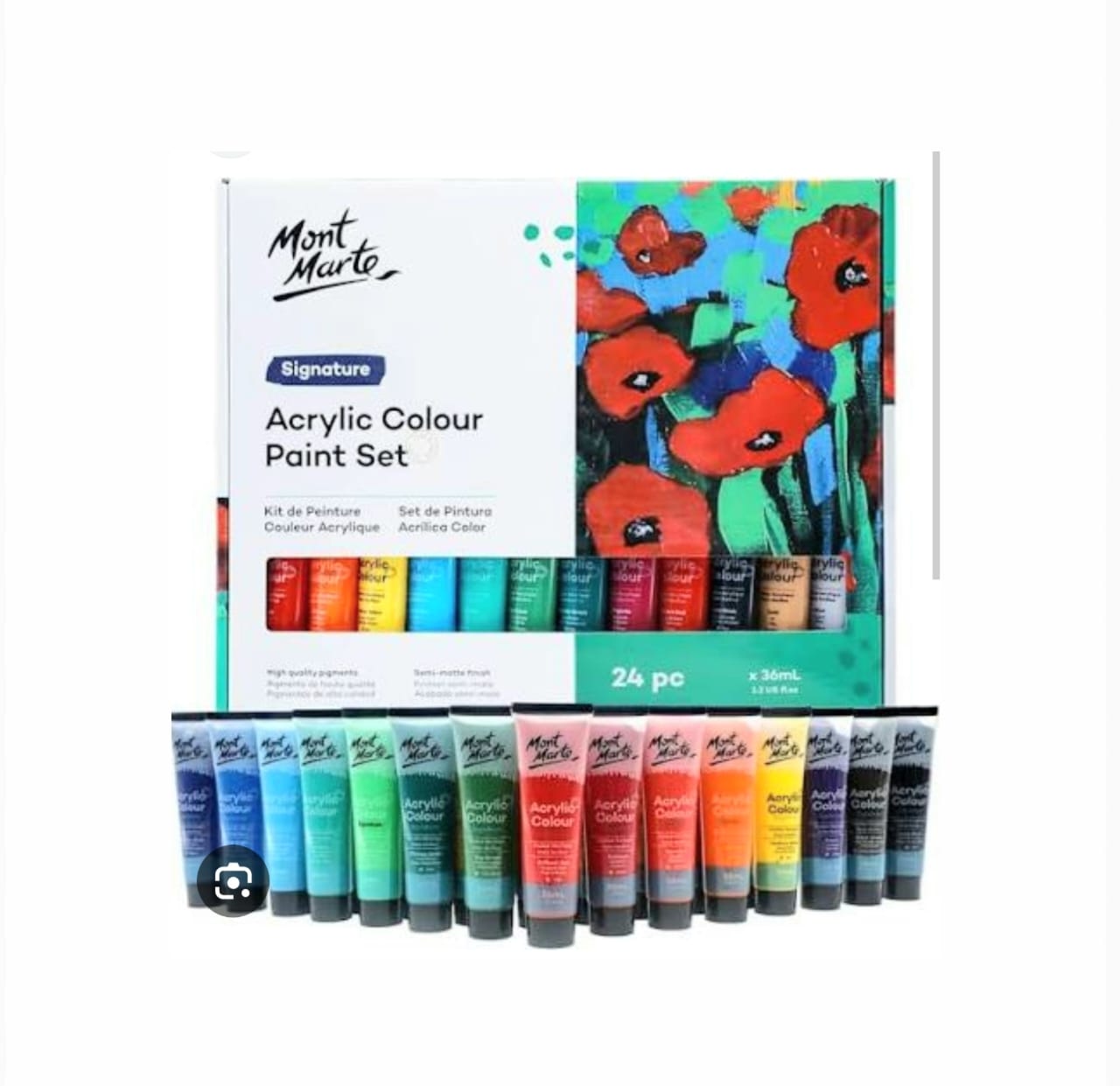 ✔ Mont Marte Acrylic Colour Paint Set – 24 vibrant colors, 36ml each.